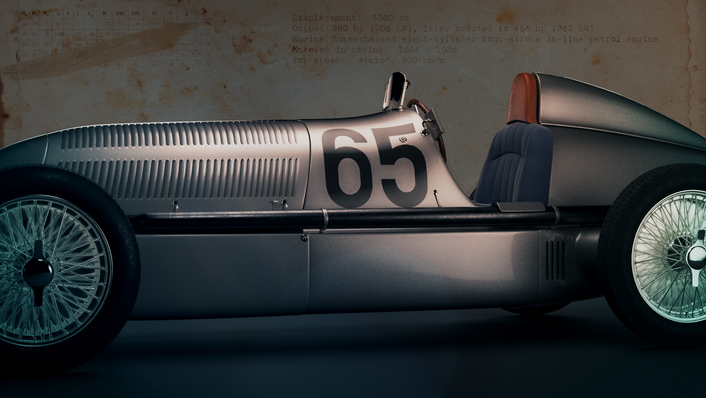 Wiser Films commissioned Chapter 3 to create the motion design content for their documentary on the historic racing and land speed record cars of Germany in the 1930s. Designing a short title sequence, stills animations, marketing material, tracked statistics and more detailed CG sequences whereby the cars grow from animating blueprints to full photorealistic 3D, the graphics served to help tell the story of motor racing development in this tumultuous era.